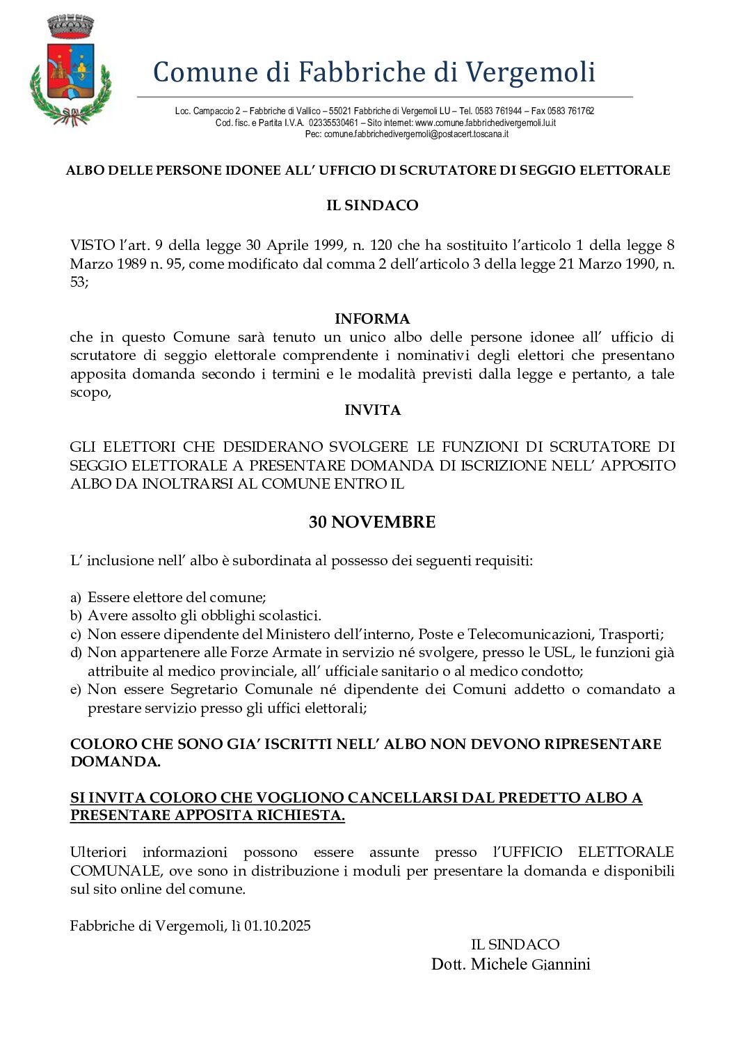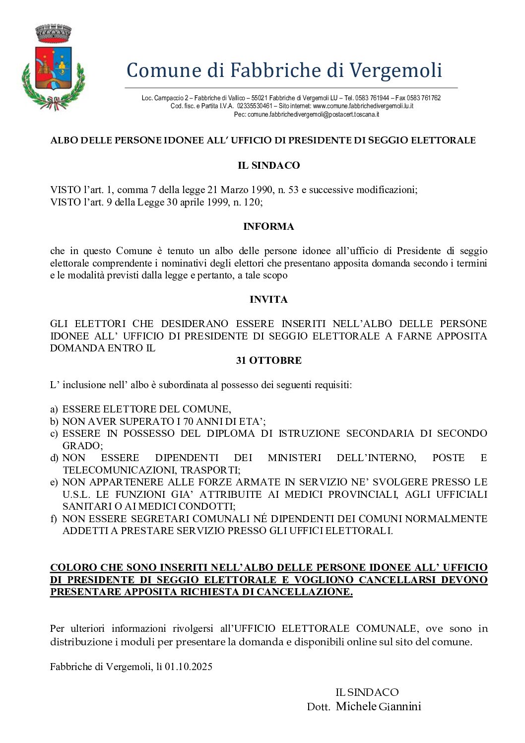 Le comunicazioni ufficiali del Sindaco, degli organi politici e degli uffici comunali.